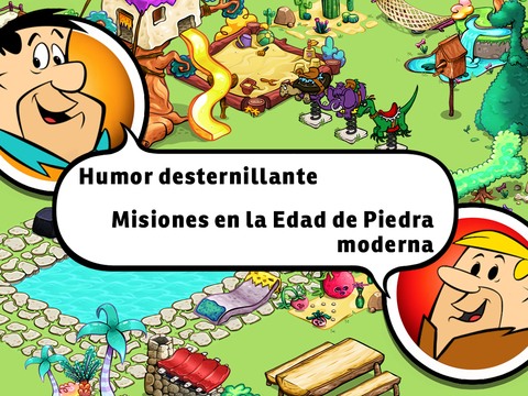 Juega con Pedro, Vilma, Pablo, Betty, Bam Bam, Pebbles, Hoppy, Dino y Baby Puss, y disfruta de 400 animaciones increíbles que se activan cuando asignas acciones a tus personajes o aparatos animales (cacharrosaurios). Colecciona más de 90 cacharrosaurios, desde la aspiradora mamut al percutor pterodáctilo y utiliza más de 350 artículos para personalizar tu casa y la ciudad. Construye 60 edificios y visita las partidas personales de tus amigos.