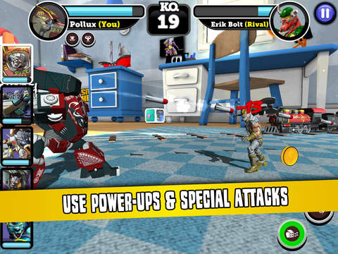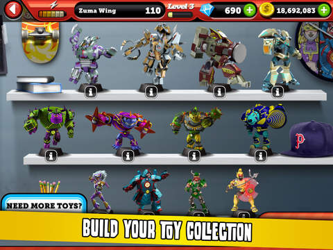 - Personajes de juguete únicos, cada uno con sus propias características y arma especial.