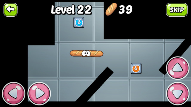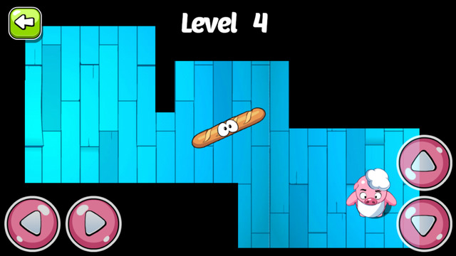 Ayuda a alimentarse al cerdito cocinero. Tan sólo tienes que mover la barra de pan hasta su boca. ¿Crees que va a ser una tarea fácil? ¡Pues no! Para que lo sepas, las baguettes giran sobre sí mismas, por lo que tendrás que ingeniártelas y echar mano de toda tu habilidad para evitar las paredes, trampas y otros obstáculos que te encontrarás por el camino. ¡Ah!, y si lo haces dentro del tiempo establecido, podrás conseguir hasta tres estrellas en cada uno de sus 40 desafiantes niveles.