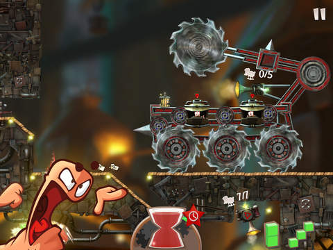 Salva a las ovejas guiándolas a través de trituradoras, descomunales sierras, profundas fosas llenas de pinchos, cuchillos de carnicero gigantes balanceándose... Ayúdalas a huir de sus diabólicos dueños o déjalas caer en las malvadas trampas de los gusanos, y disfruta viendo como sus tripas son esparcidas por todas partes. Por todas partes, en serio.