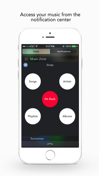 El widget nos permite reproducir canciones de nuestras listas de reproducción, álbumes o elegir por el artista. La característica 'On Deck' nos permite crear una lista de reproducción sobre la marcha, perfecto para una fiesta, en el gimnasio o un viaje por carretera.